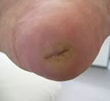 This 59 year old female underwent amputation of the toes on her left foot due to “toes turning dark”. She also underwent a surgical revision of the amputation site approximately 2 months later due to continued “non-healing” of the wound. She had not walked since November of 2008 due to the wounds/surgical procedure. Over the course of several months she also developed a wound over her left heel and was told that she must have a below the knee amputation due to “lack of circulation”. She underwent a stent placement to restore blood flow to the leg but was told that this “did not work and she must have an amputation!” She was opposed to this and chose progressive wound management at ETI.