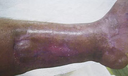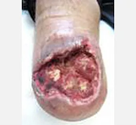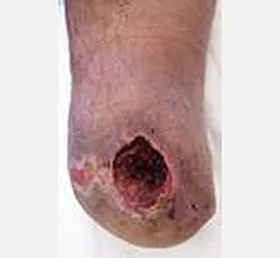 This 37 year old male presented with severe leg wounds of more than two years duration. His condition was complicated by diabetes and obesity. He delayed seeking treatment because he feared he would need an amputation. He was treated with progressive wound management.