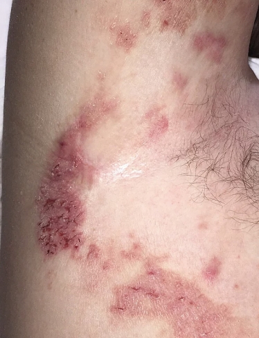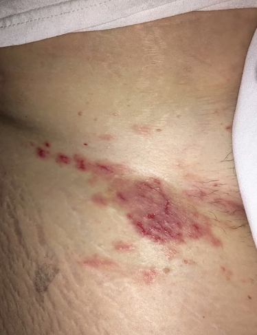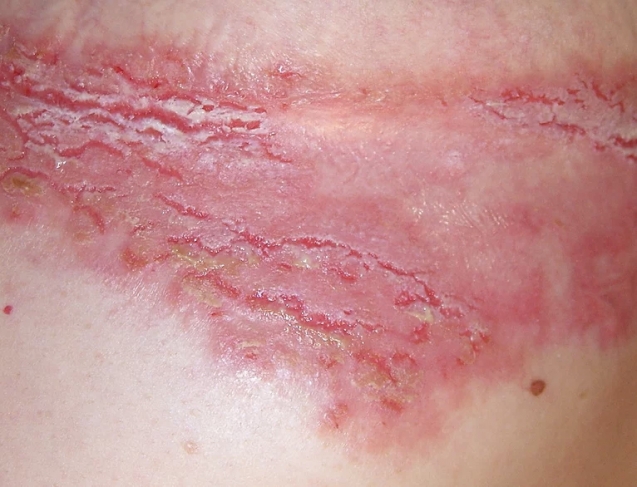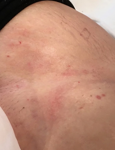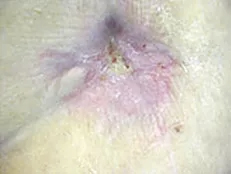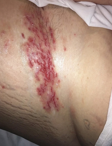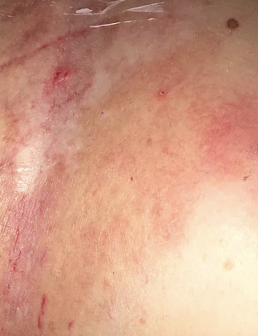 This 45 year old female presented with multiple "non-healing" wounds, with a continuous duration of 10-12 years. After seeing multiple specialists she was diagnosed with Hailey-Hailey disease an incurable genetic (congenital) skin disorder. The total wound surface area was approximately 14" by 14". The severe pain and aggravation from the chronic drainage at times left her nearly incapacitated. She had undergone many failed treatment attempts, including topical medications, multiple types of dressings, and laser surgery. After years of unsuccessful treatment she opted for aggressive wound management at ETI Wound Healing Center.